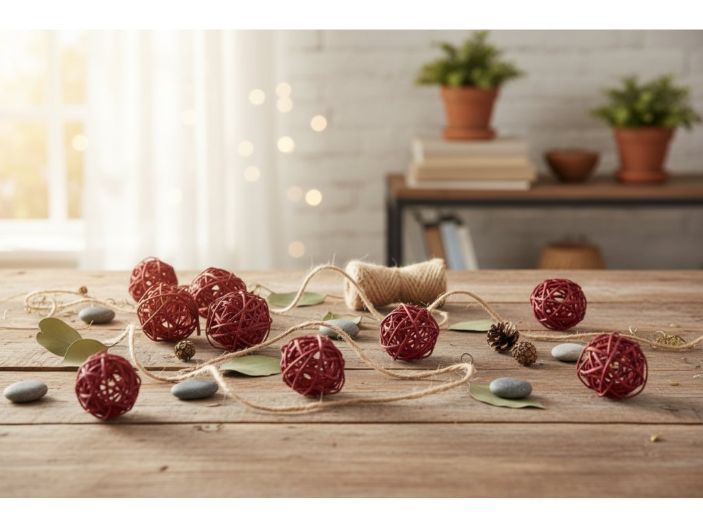 Ratanové guličky s priemerom 4 cm využijete najmä vtedy, keď chcete dekorácii pridať objem a farebný bod bez zbytočného prehustenia. Hodí sa do venčekov, stolových aranžmánov, boxov, sezónnych kompozícií aj na dozdobenie balenia (napríklad pri darčekoch alebo kyticiach zo sušiny). Bordová farba pôsobí luxusne v jesennom a zimnom ladení, no vie byť aj moderným kontrastom pri krémových, nude a prírodných tónoch.