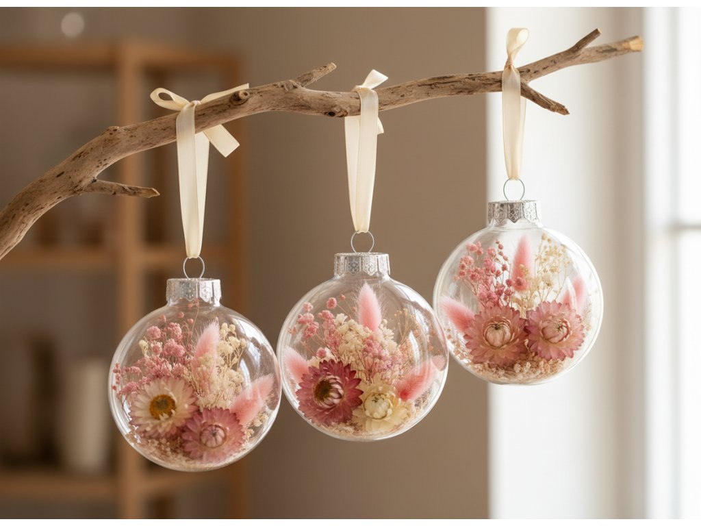 Priehľadné gule symbolizujú čistotu, svetlo a nové začiatky. Keď ich naplníš sušenými kvetmi, vzniká malý uzavretý svet – prírodný talizman, ktorý si uchová svoju krásu celú sezónu aj ďalší rok. Vianočné ozdoby plnené sušinou sú hitom posledných sezón, najmä pre milovníkov eco a prírodného štýlu.