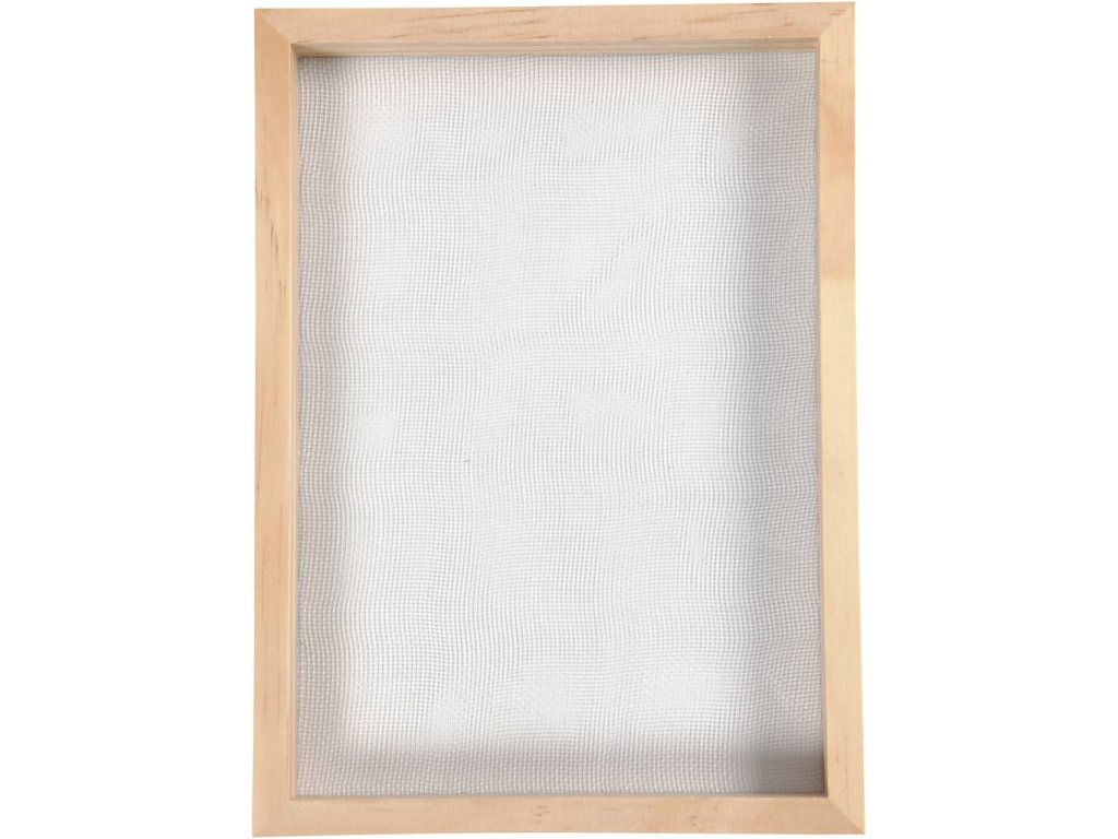 Jednoduchý dřevěný rám na výrobu ručního papíru ve formátu A5 je ideální pomůckou pro všechny, kteří chtějí objevit kouzlo vlastnoručně vyrobeného papíru. Používá se velmi jednoduše – rám stačí ponořit do nádoby s vodou a papírovou buničinou. Na jeho povrchu se zachytí vrstva hmoty, voda se odcedí a mokrý papír vyklopíte na savou podložku, kde ho necháte vyschnout. Takto vyrobený papír má rustikální a nepravidelné okraje, což mu dodává originální vzhled.