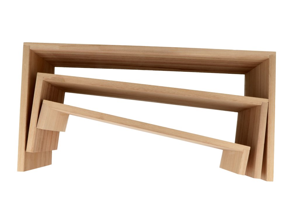 Sada tří dřevěných poliček z nelakovaného dřeva nabízí nekonečné možnosti využití v interiérovém designu i floristice. Poličky mohou sloužit jako základ pro tvorbu mechových obrazů, výstavních polic na sušené květiny, rostliny, dekorace nebo symbolické stromy života.