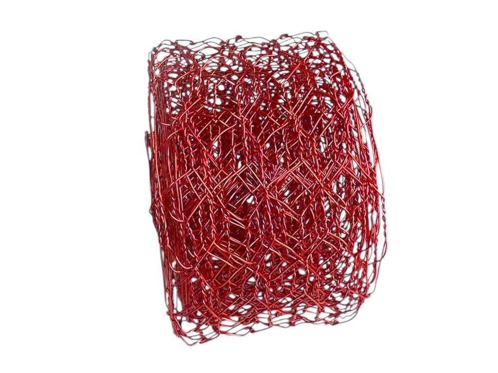 Pletivo skladujte na suchém místě, abyste předešli korozi nebo poškození. Při práci používejte vhodné nůžky na stříhání drátu, abyste dosáhli čistého řezu a prodloužili životnost pletiva. Ve floristice slouží drátěné pletivo jako tichý, funkční prvek, který nevyzní rušivě, ale udělá rozdíl. Aranžérské pletivo je vyrobeno z pozinkovaného kovu s povrchovou úpravou v červené barvě. Oka mají optimální velikost pro uchycení stonků i drobných dekorací – cca 2,5 × 1,5 cm.