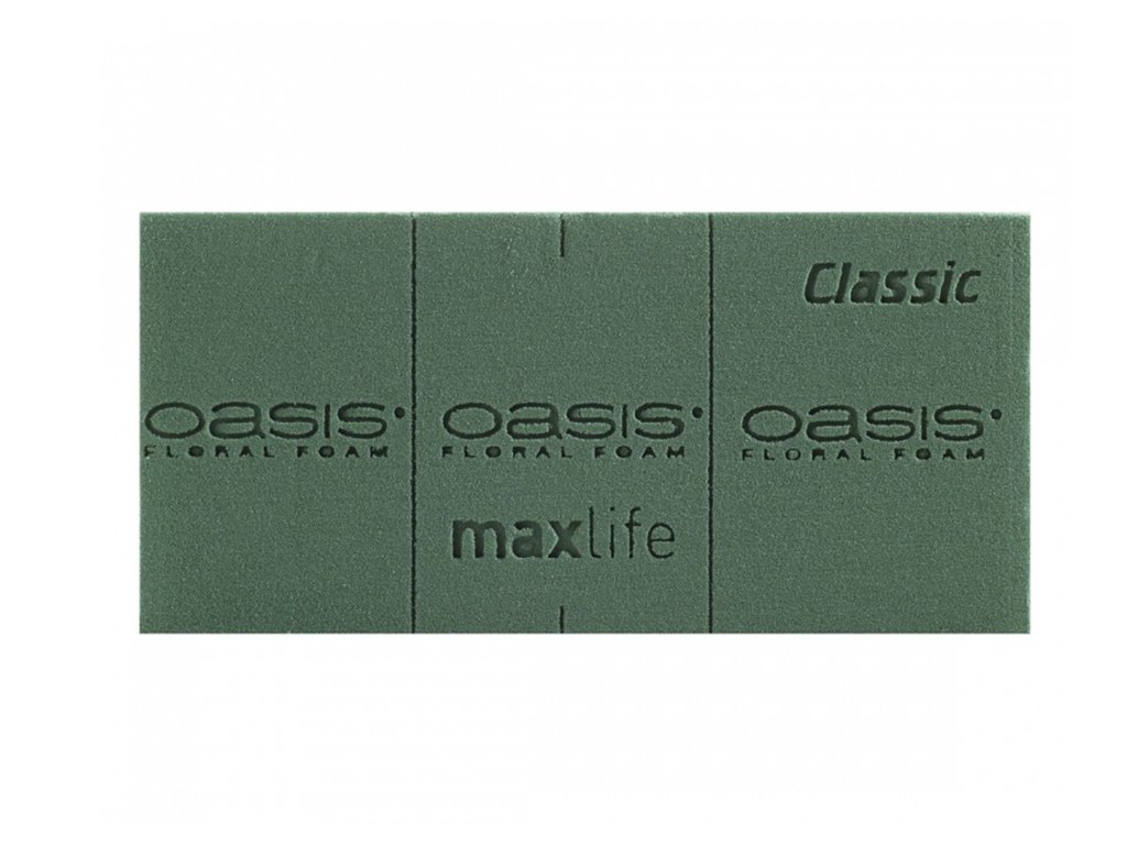 Aranžérská pěnová hmota OASIS® Maxlife Classic (Florex) je profesionální a univerzální pomůcka pro floristy a aranžéry. Díky kvalitě MAXlife udrží květiny déle svěží, spolehlivě fixuje stonky a je ideální i pro jemnější a tenčí květiny. Jedna cihla s rozměry 23 × 11 × 7,7 cm se dá snadno řezat a tvarovat podle potřeby aranžmá. Pro větší projekty je dostupné i balení v kartonu po 20 cihlách.