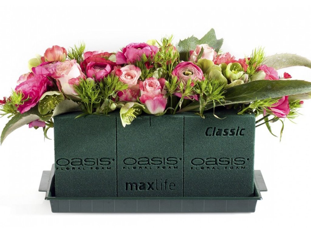 Aranžérská miska OASIS® Sandwich Praktická zelená aranžérská miska OASIS® „Sandwich“ slouží jako podstavec pro cihlu florexové hmoty OASIS® Maxlife Classic (23×11×7,7 cm)....