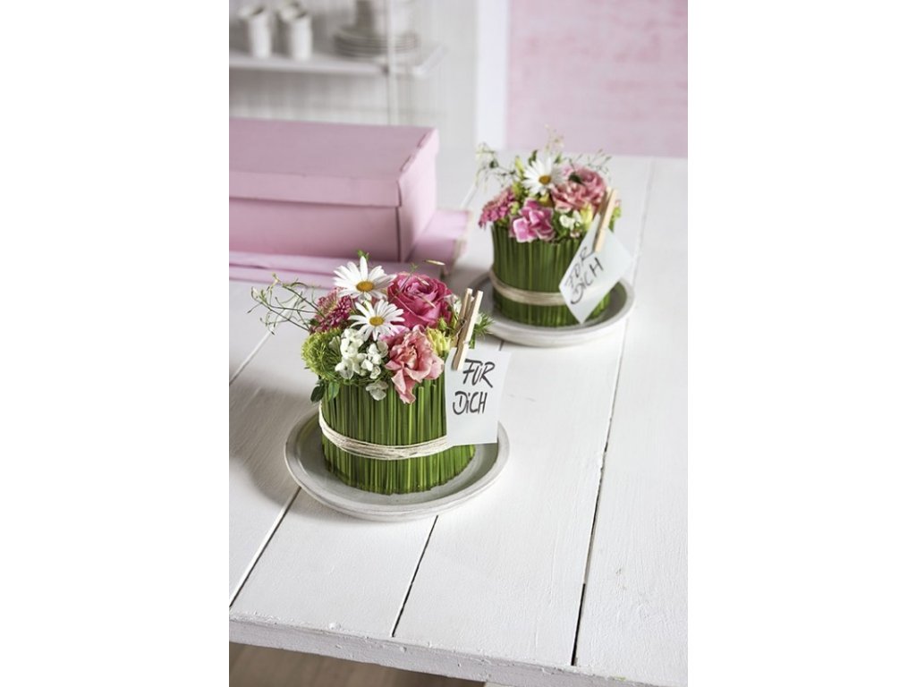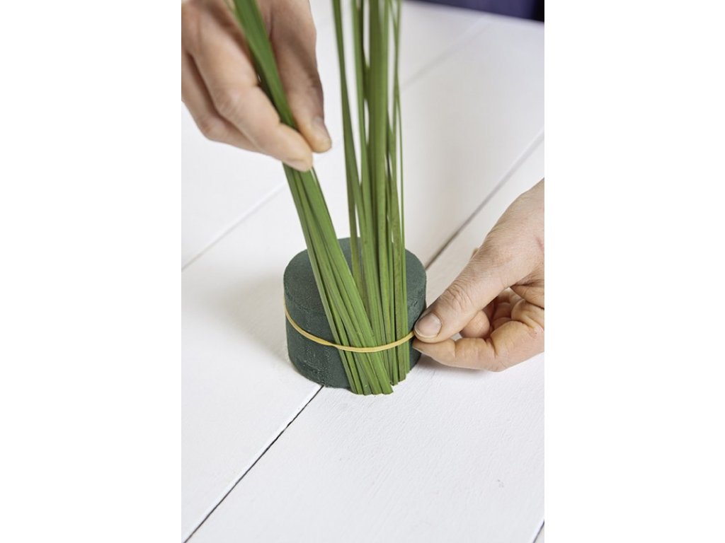 Před použitím nechte válec samovolně nasáknout ve vodě. Nikdy ho neponořujte násilím ani neotáčejte ve vodě, aby nevznikly suché místa. Během aranžování pravidelně doplňujte vodu do podložky, aby květiny zůstaly čerstvé co nejdéle. Skladujte v suchu a mimo přímé sluneční záření.