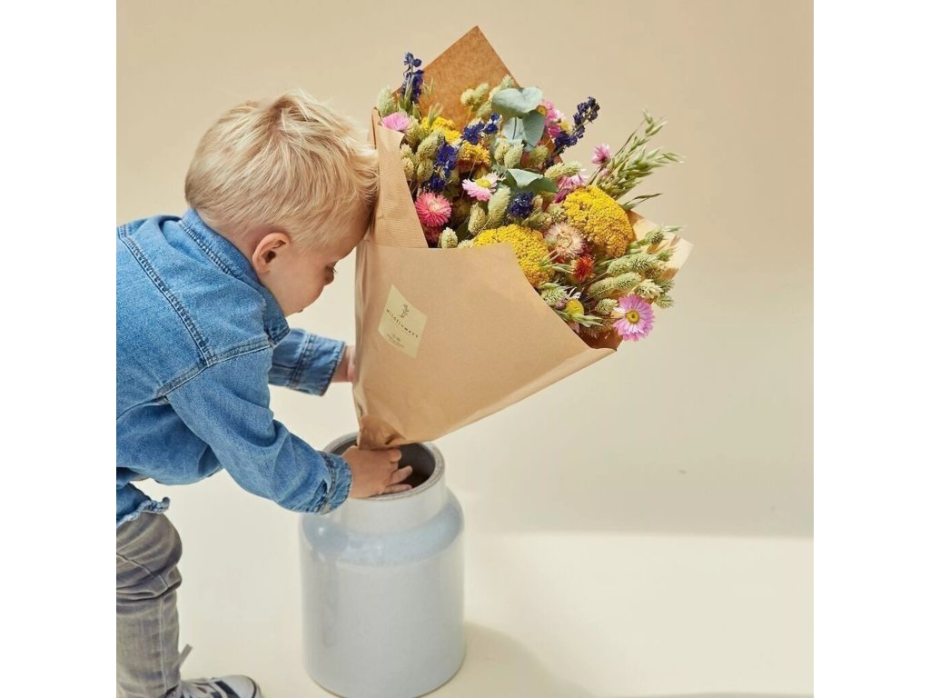 Kytice byla ručně vázaná na kontrolované farmě v Holandsku. Květy a trávy byly šetrně sušené, aby si zachovaly svou přirozenou strukturu a jemné barvy. Každý kus je originál, proto se mohou jednotlivé složky mírně lišit v závislosti na sezóně.
