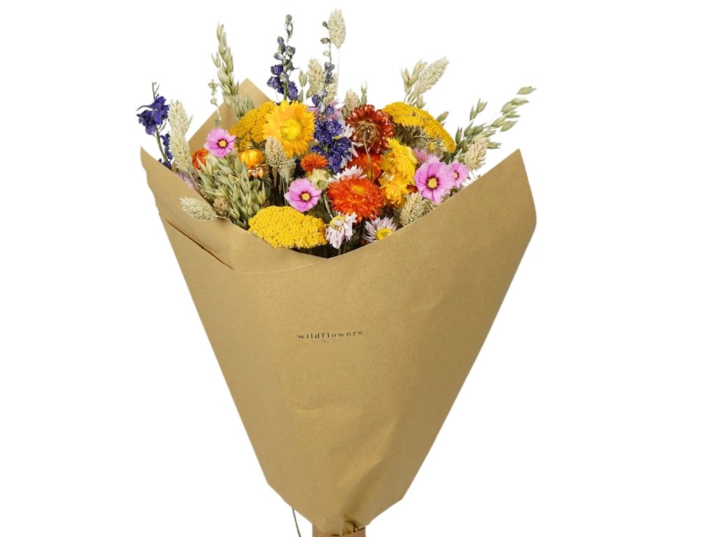 Pokud se kytice časem omrzí, můžete ji rozdělit a použít do menších aranžmá – například do věnečku, svícnu, dárkového balení či přírodního rámečku. Sušené květy jsou také skvělým doplňkem k ekologickému darování: připevněte je na balíček nebo kartičku a dodáte jim duši.