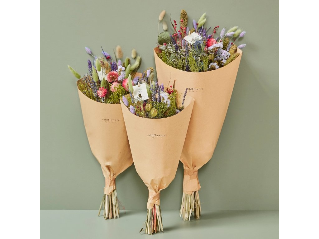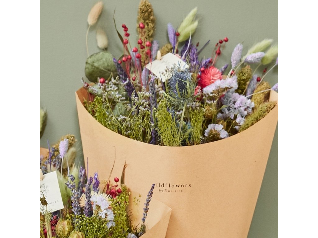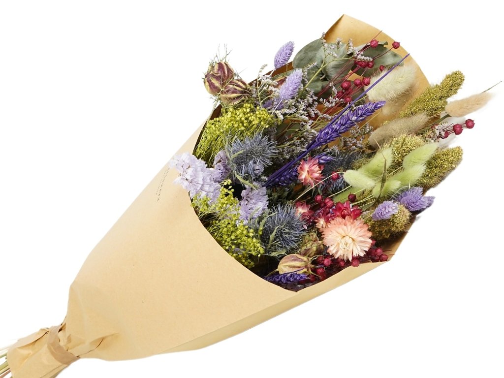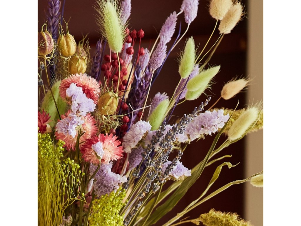 Kytice je ručně vázaná z kvalitních sušených rostlin pěstovaných v Holandsku. Květy byly šetrně sušené přirozenou cestou, aby si zachovaly svou texturu a barvu. Každá kytice je originál – výsledek precizní práce florálních designérů.