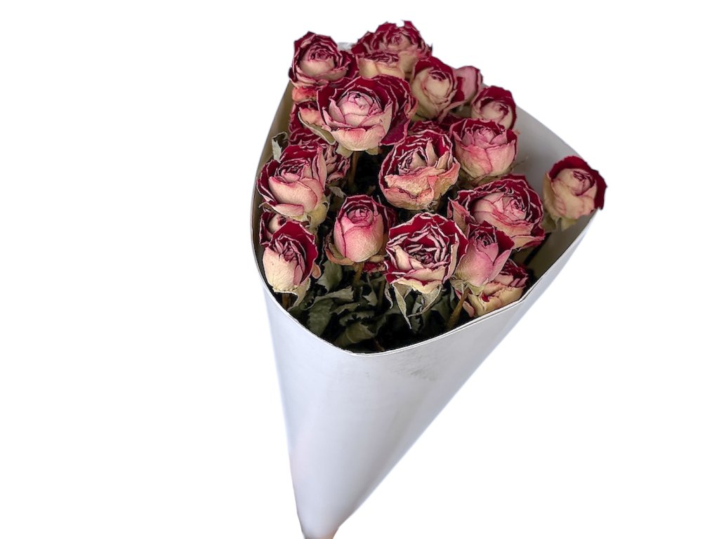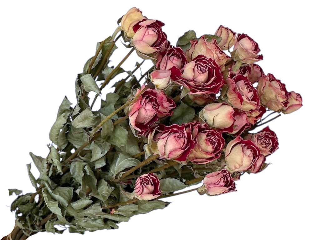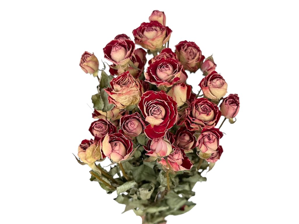Růže jsou sbírány během kvetení, následně jemně teplem sušené, aby si zachovaly tvar, barvu a přirozenou strukturu. Ombré barevné přechody jsou přirozené, identicky zachovávající jemnost a autentický vzhled květů.