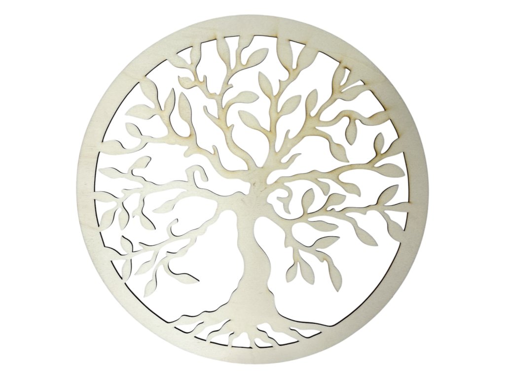 Dřevěný výřez stromu života o průměru 40 cm představuje výjimečný základ pro tvorbu originálních dekorací. Díky preciznímu laserovému řezu a přírodnímu vzhledu je ideální pro vytváření mechových obrazů, dekorací se stabilizovaným islandským lišejníkem, jakož i aranžmá ze sušených květin, například gypsomilky, limonky, lagurusu či pšenice.