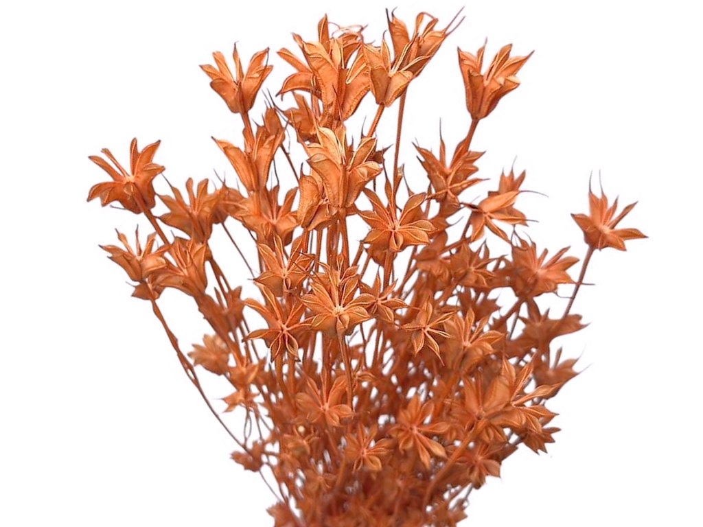 Černucha (Nigella orientalis) je pěstovaná a sušená tradičními metodami, které zachovávají její typický tvar a pevnost. Po usušení je šetrně barvená do meruňkovo-oranžového odstínu, který působí měkce, přirozeně a dlouhodobě si zachovává barvu.