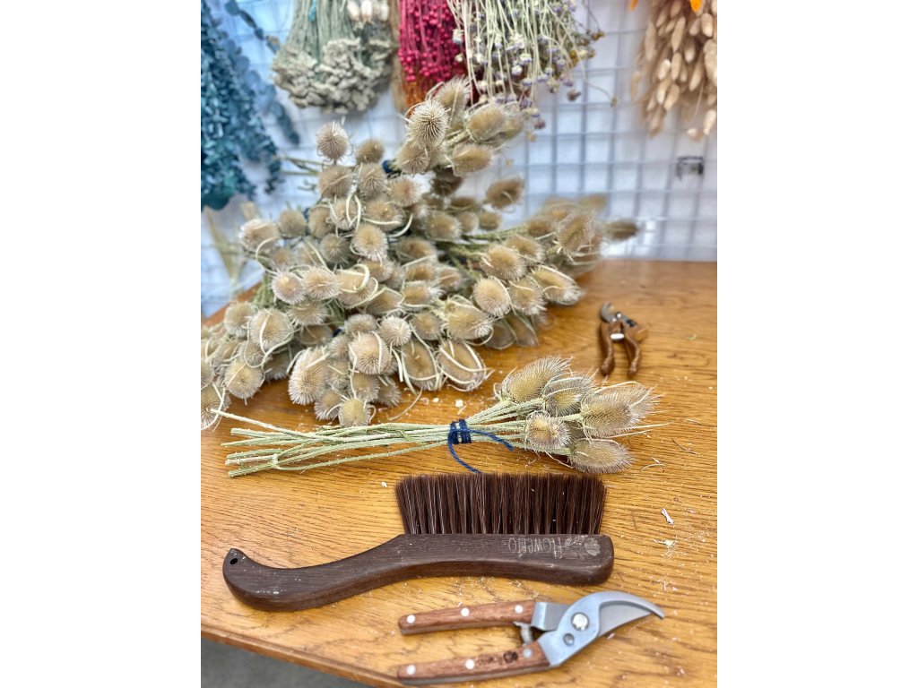 Štětka planá (Dipsacus fullonum) je tradiční luční rostlina, která rostla hojně po celé Evropě. Naše bodláky pocházejí přímo z našich luk, kde jsme je ručně sbírali, sušili a vázali s důrazem na kvalitu. Díky šetrnému zpracování si zachovaly svou autentickou přírodní barvu a typickou tvrdou strukturu.