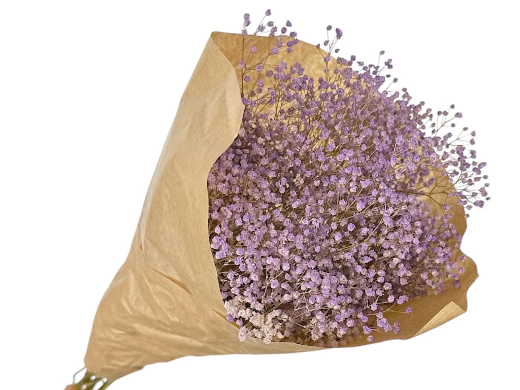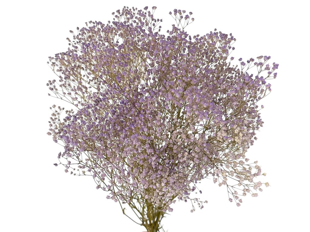 Gypsophila symbolizuje čistotu, upřímnost a věčnou lásku, proto se tak často využívá ve svatební floristice. Fialová barva jí přidává duchovní rozměr – představuje kreativitu, tajemství, mystiku a noblesu. Je proto ideální volbou pro jedinečné aranžmá, které mají zanechat trvalý dojem.