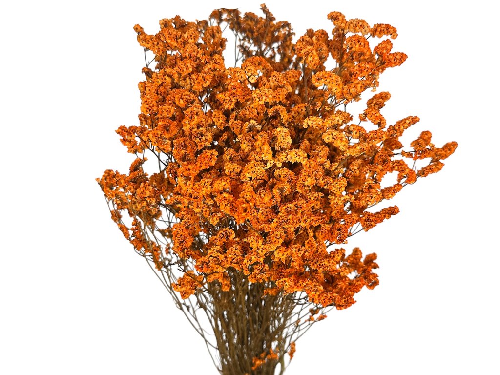Limonium sinensis pochází z Asie a Středomoří, kde je známé také pod názvem „sea lavender“. Po sklizni se rostlina suší přirozeným způsobem, aby si zachovala svou typickou papírovou strukturu. Tento variant je tónovaný do sytě oranžové barvy, která zvýrazňuje jeho dekorativní charakter.