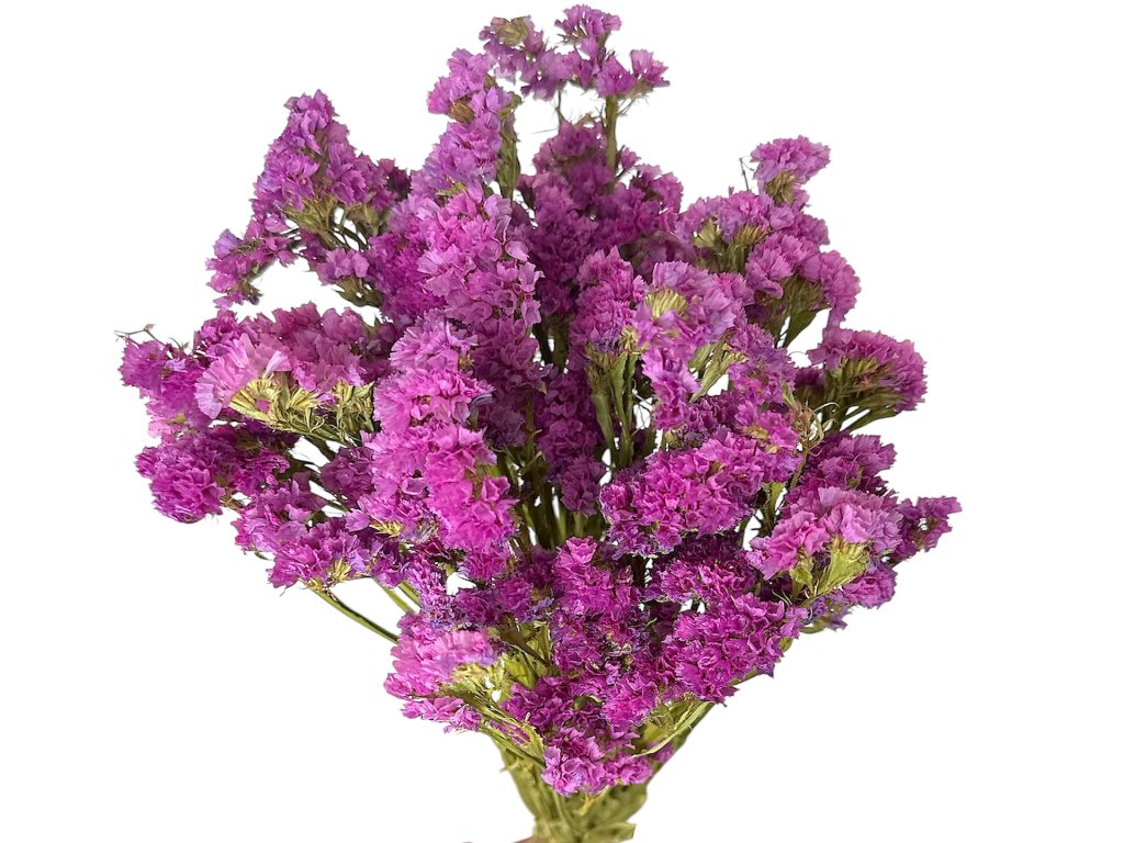 Limonium sinuata, známé také jako „statice“ nebo „mořská levandule“, se původně pěstuje ve Středomoří a Asii. Naše limonka pochází z rodinné barvy, kde ji pečlivě a s láskou ručně sbírají, suší, vážou a balí. Díky tomu si květy uchovají svůj přirozený vzhled, přirozený odstín a flexibilitu po celé měsíce.