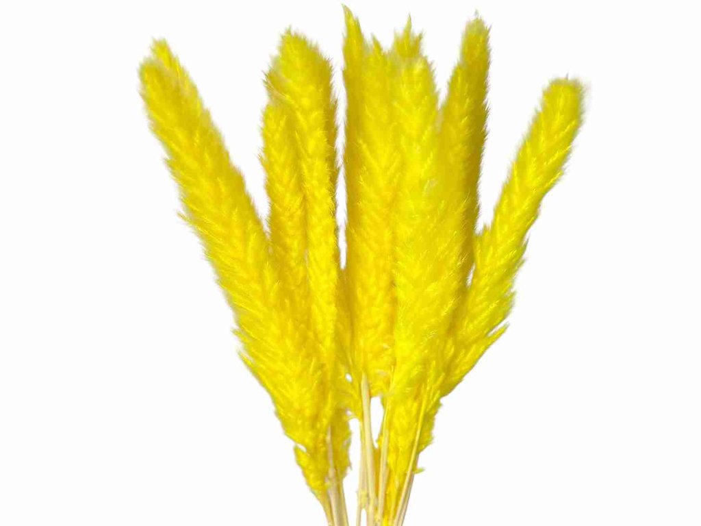 • Žlutá pampová tráva působí energicky – skvěle oživí tlumené interiéry i aranžmá na jaře a v létě