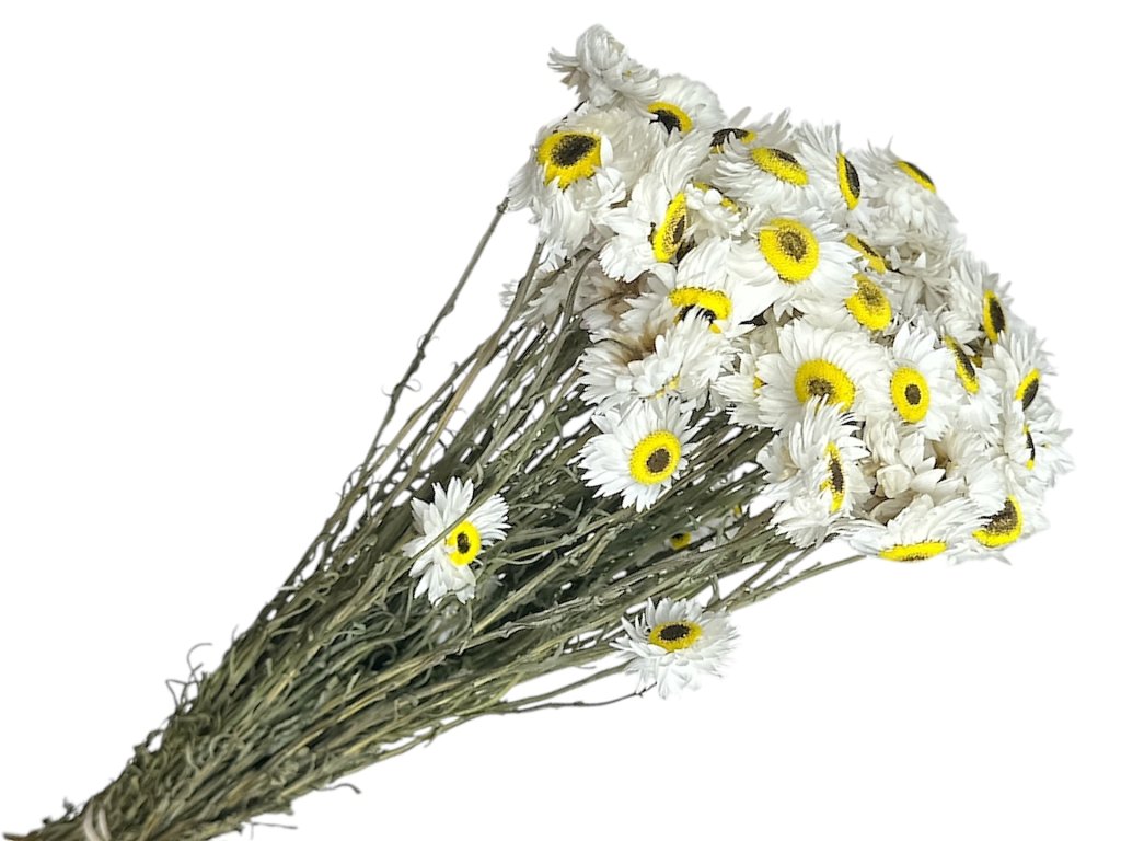 Acroclinium (známé také jako Helipterum nebo slaměnky) pochází z Austrálie, kde rostlo přirozeně na loukách a otevřených prostranstvích. Známé je svou schopností zachovat si krásu i po usušení, což z něj dělá oblíbenou rostlinu pro sušené aranžmá už od 19. století. Sbírají se ručně na lokální rodinné farmě v době, kdy jsou květy nejkrásnější. Následně se šetrně suší, aby si zachovaly barvu, tvar i jemnou přírodní vůni. Balení je bez plastu a květiny jsou plně kompostovatelné, čímž přispívají k nízké uhlíkové stopě.