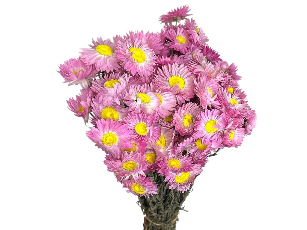 Acroclinium (známé také jako Helipterum nebo slaměnky) pochází z Austrálie, kde rostlo přirozeně na loukách a otevřených prostranstvích. Známé jsou svou schopností zachovat si krásu i po usušení, což z nich dělá oblíbenou rostlinu pro sušené aranžmá už od 19. století. Sbírají se ručně na lokální rodinné farmě v době, kdy jsou květy nejkrásnější. Následně se šetrně suší, aby si zachovaly barvu, tvar i jemnou přírodní vůni. Balení je bez plastu a květiny jsou plně kompostovatelné, čímž přispívají k nízké uhlíkové stopě.