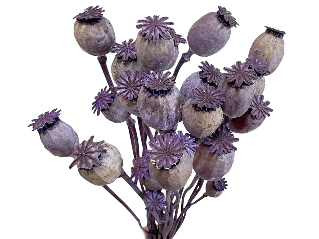 Makovice pocházejí z máku setého, který je pěstován tradičním způsobem na kontrolovaných středoevropských polích. Po sklizni se přirozeně suší a barví, čímž si zachovávají svůj tvar. Sušené makovice se následně třídí a balí s ponechanou stonkou pro jednoduchou manipulaci při aranžování.