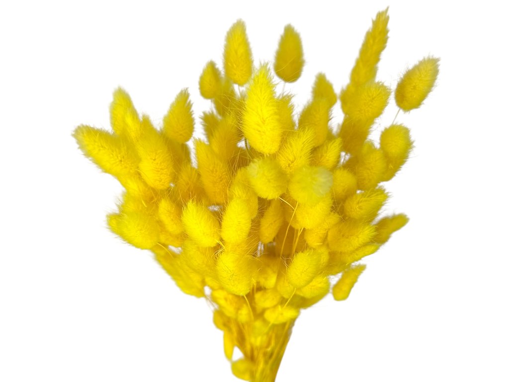 Lagurus se pro svůj vzhled nazývá také „bunny tail grass“ – zaječí ocásky. Symbolizuje hravost, jemnost a radost ze života. Žlutá barva je od nepaměti spojována se sluncem, optimismem, štěstím a energií – proto je ideální volbou pro aranžmá, které mají působit veselým a pozitivním dojmem.