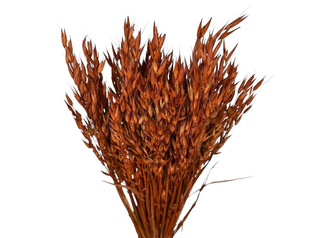 Oves (Avena) byl po sklizni v Evropě šetrně sušený a ručně barvený do hnědého odstínu. Tato přirozená surovina si zachovává jemnou strukturu a krásný pohyb klasů, které dodají vašim aranžmá lehkost a eleganci. V minulosti se oves využíval nejen na výživu, ale i jako dekorační prvek v lidových výzdobách, kde symbolizoval hojnost a úrodu.