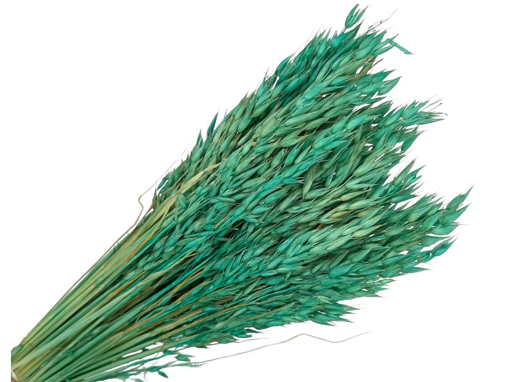 Oves (Avena) byl po sklizni v Evropě šetrně sušený a ručně barvený do výrazné tyrkysově modré barvy. Tato přirozená surovina si zachovává jemnou strukturu a krásný pohyb klasů, které dodají vašim aranžmá lehkost a eleganci. V minulosti se oves využíval nejen na výživu, ale i jako dekorační prvek v lidových výzdobách, kde symbolizoval hojnost a úrodu.