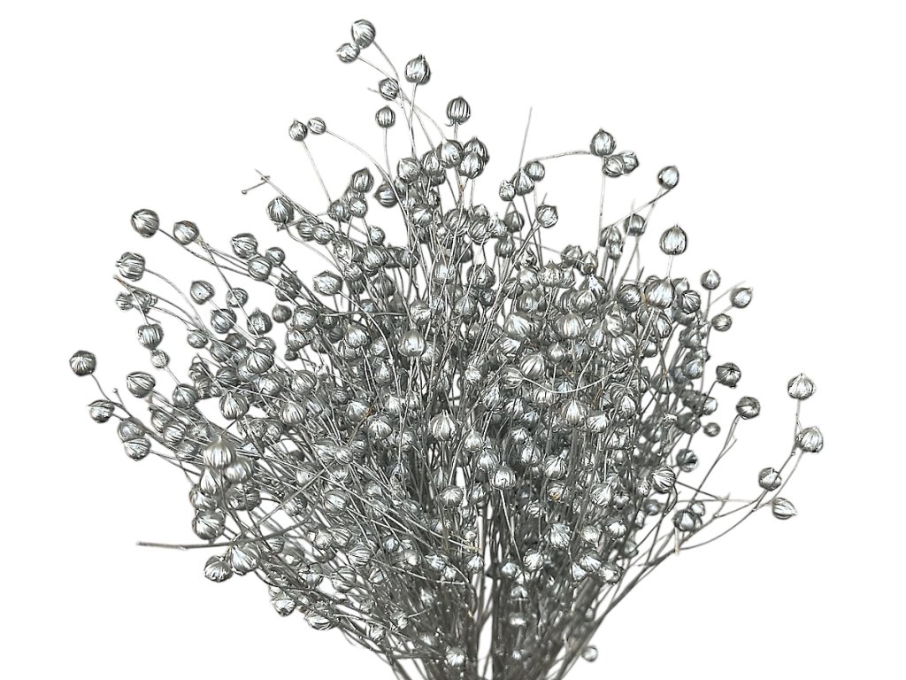 Sušený lan metalický - kytice cca 100g - stříbrný