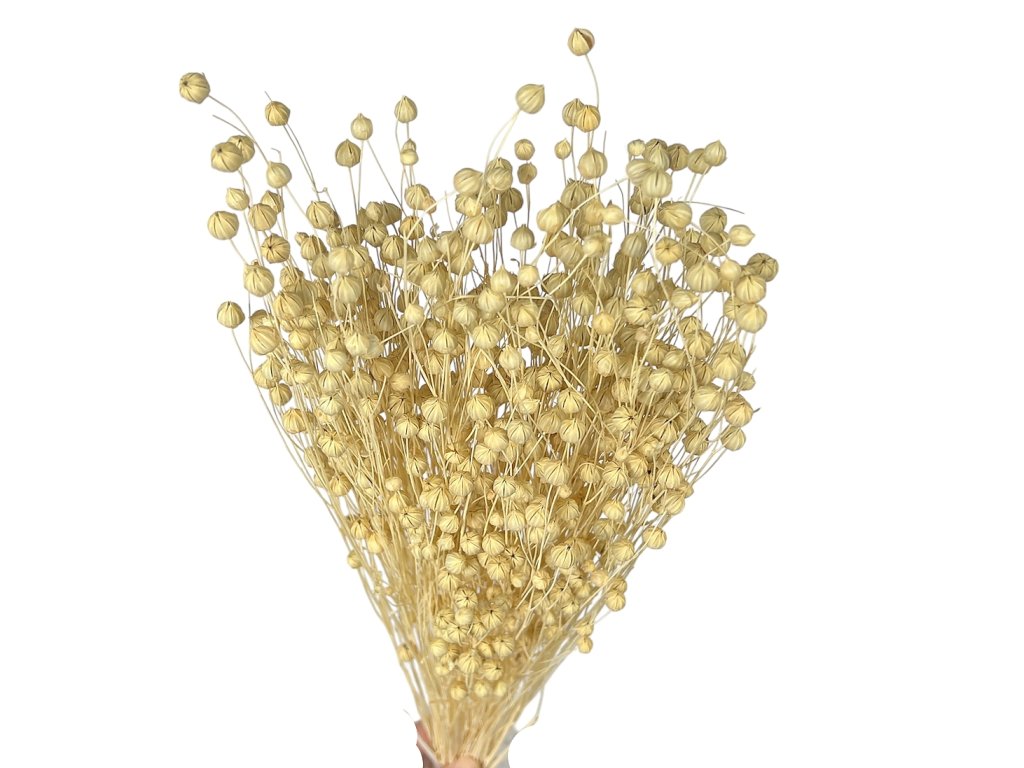 Sušený len je bezúdržbový. Nevyžaduje vodu ani speciální péči. Uchovávejte jej na suchém místě mimo přímé sluneční světlo a vlhkosti. V případě zaprášení doporučujeme jemně ofoukat studeným vzduchem z fénu nebo použít měkký štětec, případně oživit sprejem na sušené rostliny (např. SPRING pro florist).