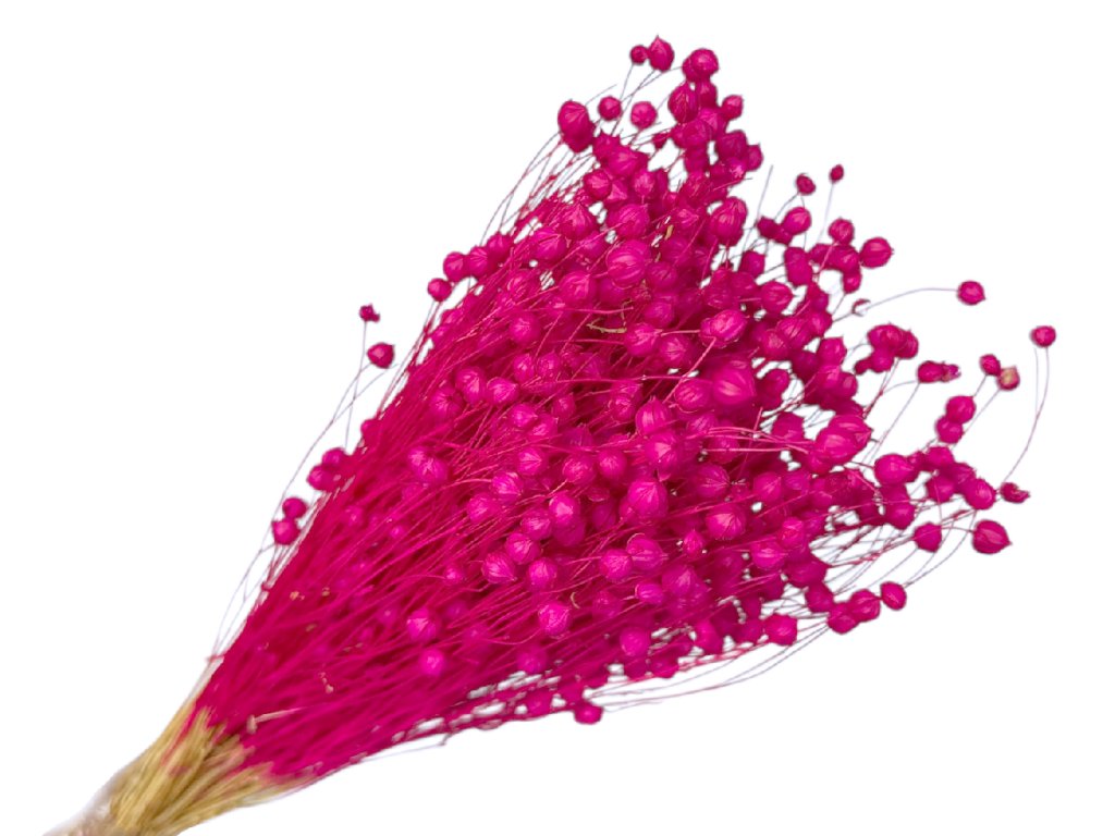 Len je jednou z nejstarších kulturních rostlin na světě. Kromě textilu se jeho stonky a květy už staletí používají také jako dekorační prvek – právě pro jejich jemnost, přirozený lesk a schopnost krásně „padnout“ v aranžmá. Sytá cyklámenová barva lnu dodává aranžmá svěžest a živý výraz, který přitáhne pozornost.