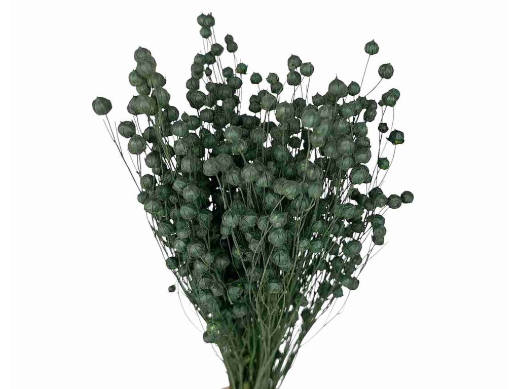 Len setý (Linum ) se pěstuje na lokálních a evropských farmách, po sklizni se jeho stonky a kulaté květy šetrně suší a následně barví do požadovaného odstínu. Barva je výrazná a stabilní, v aranžmá působí svěže a moderně.