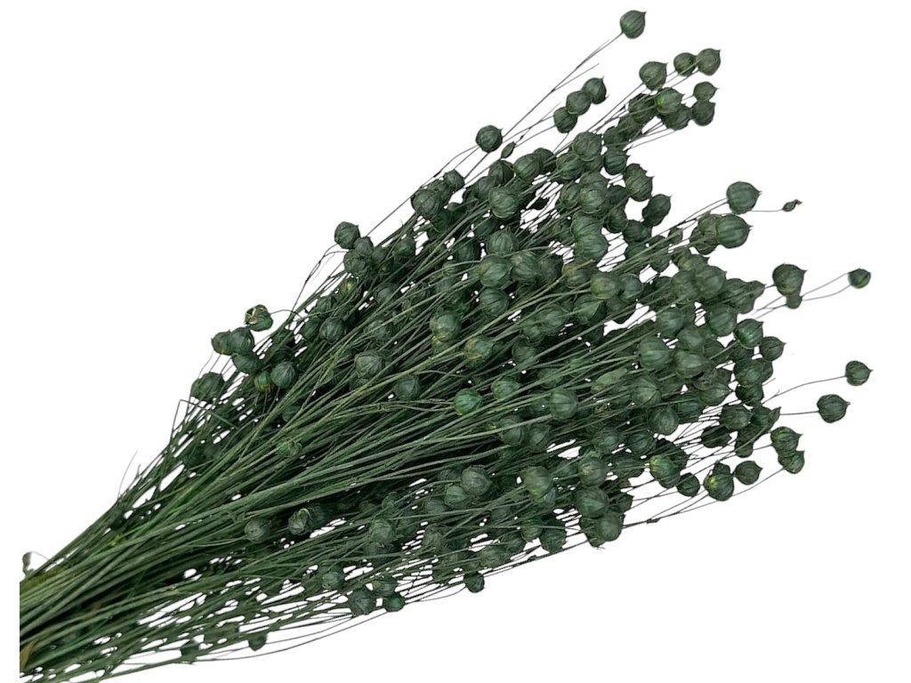 Len je jednou z nejstarších kulturních rostlin na světě. Kromě textilu se jeho stonky a květy už staletí používají také jako dekorační prvek – právě pro jejich jemnost, přirozený lesk a schopnost krásně „padnout“ v aranžmá. Tmavě zelená barva symbolizuje harmonii, přírodu a stabilitu. V dekoracích navozuje pocit klidu, útulnosti a důvěry – proto je velmi oblíbená zejména během zimních a svátečních období.