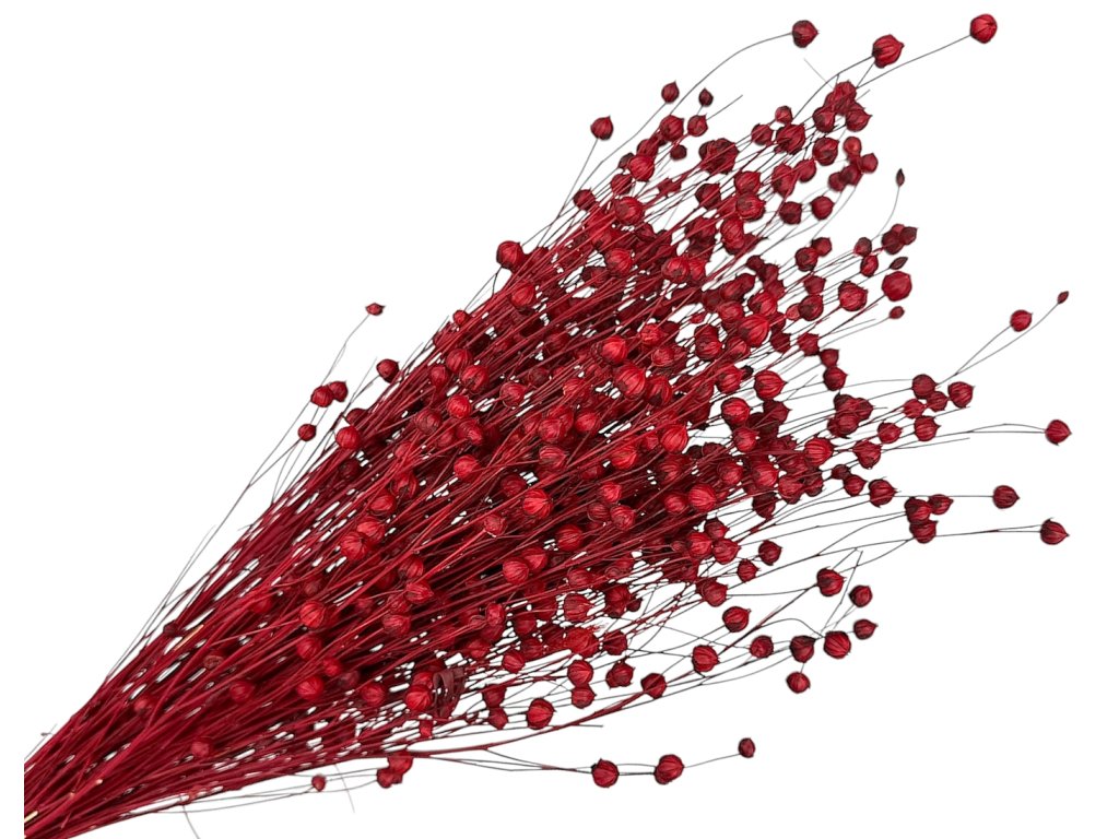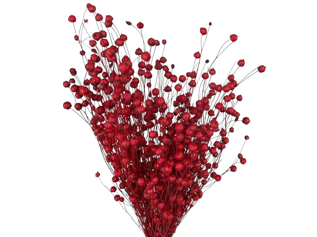 Len je jednou z nejstarších kulturních rostlin na světě. Kromě textilu se jeho stonky a květy už staletí používají také jako dekorační prvek – právě pro jejich jemnost, přirozený lesk a schopnost krásně „padnout“ v aranžmá. Červená barva je od pradávna spojována s energií, vášní a oslavou života. V kombinaci s lnem přináší do aranžmá dynamiku, hřejivost a slavnostní nádech.
