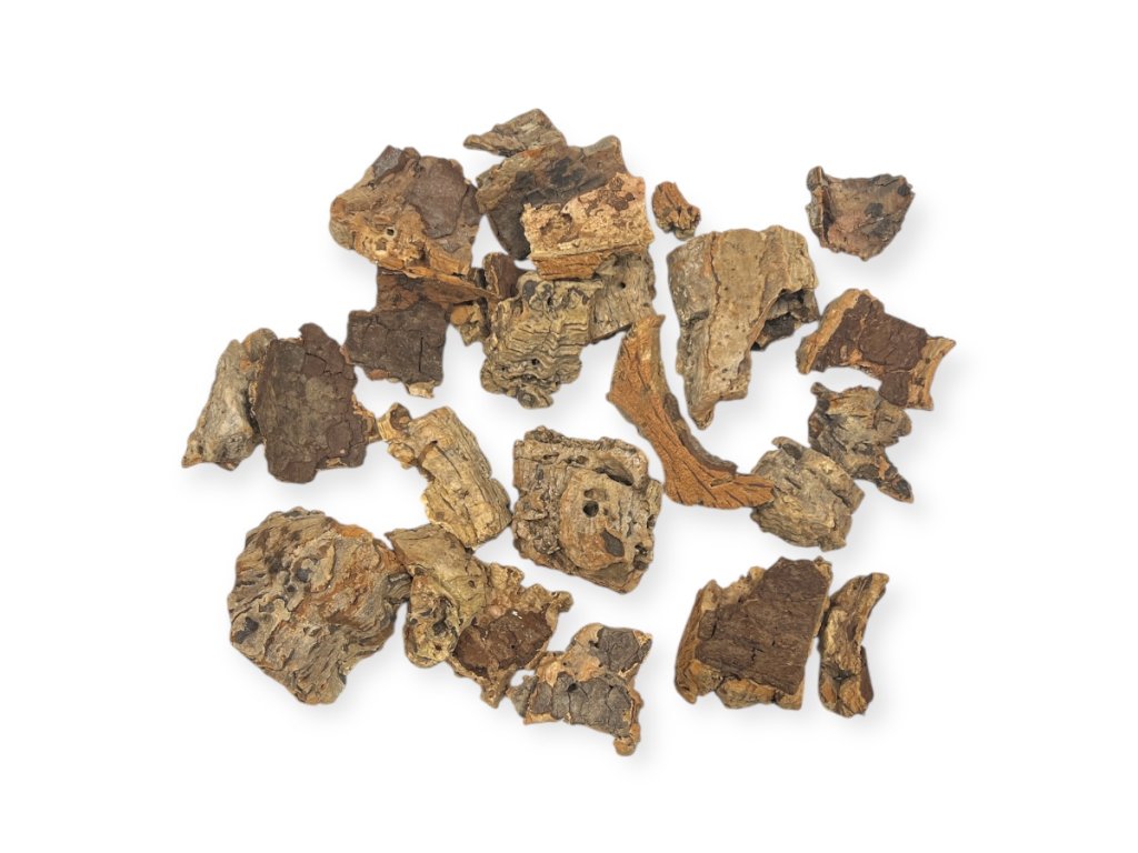 Korková kôra pochádza z kmeňa korkového duba (Quercus suber), typického pre Stredomorie. Kôra je po zbere sušená a následne rozlámaná na menšie kusy, ktoré sú vhodné na aranžovanie, umelecké projekty aj remeselnú tvorbu. Vďaka svojej ľahkosti, poréznej štruktúre a prirodzenej farbe patrí medzi najobľúbenejšie prírodné materiály vo floristike. Každý kus je jedinečný originál s vlastnou kresbou aj odtieňmi.