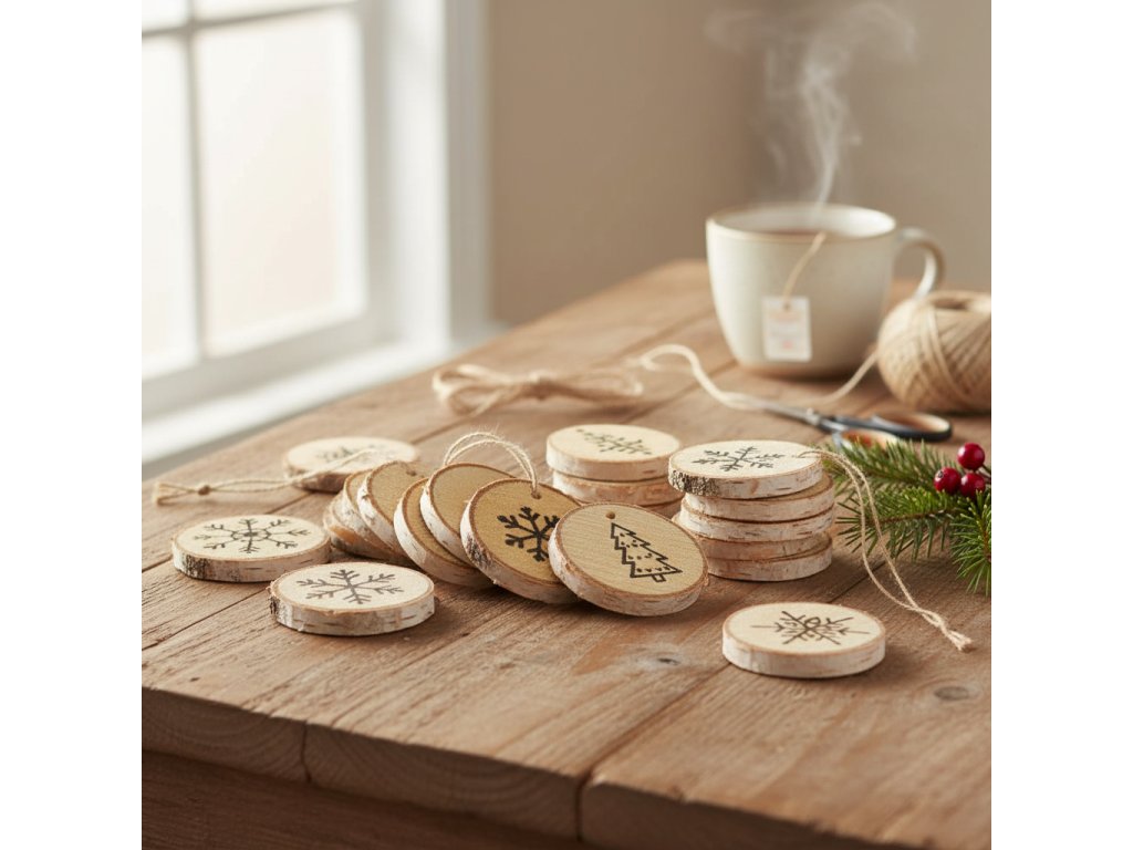 • Personalizácia do výzdoby: krúžky môžete dekorovať pečiatkami, hobby farbami alebo vypaľovaním (pyrografiou) – výsledok bude pôsobiť remeselne a veľmi „handmade“.