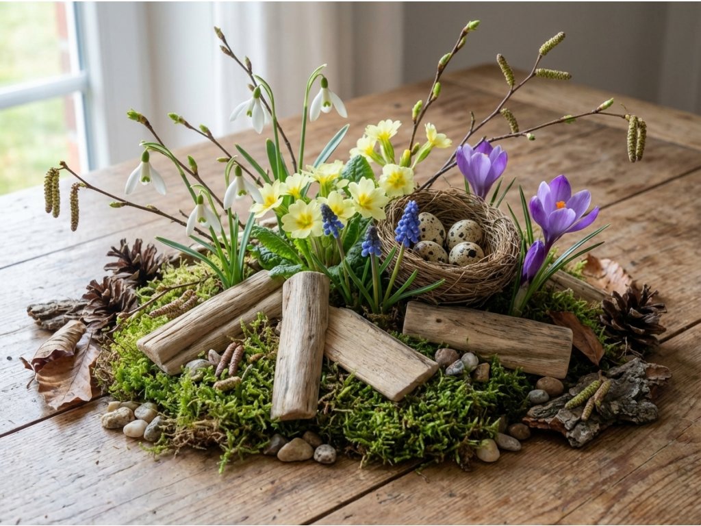 • Pre boho/natur štýl: kombinujte s jutou, rafiu, drevenou vlnou, makovicami a béžovou sušinou. Pre modernejší vzhľad pridajte jednu kontrastnú farbu (napr. bordovú alebo tmavozelenú).