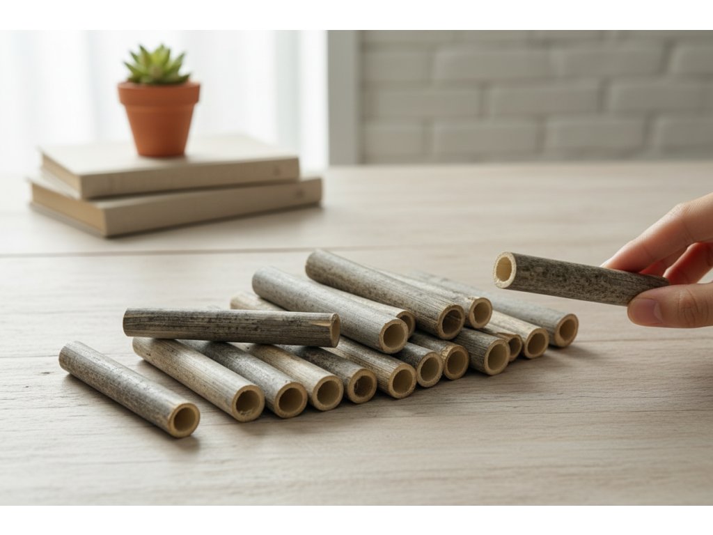 Dĺžka 9–10 cm a priemer 15–20 mm poskytuje flexibilitu – môžete ich použiť ako centrálny prvok aranžmánu alebo jemný doplnok. Dutá štruktúra umožňuje vložiť do nich jemné svetielka, mach alebo drobné dekoratívne prvky. Steblá sa dajú ľahko lepiť, aranžovať a kombinovať s ostatnými prírodnými materiálmi, čím vznikajú esteticky vyvážené kompozície.