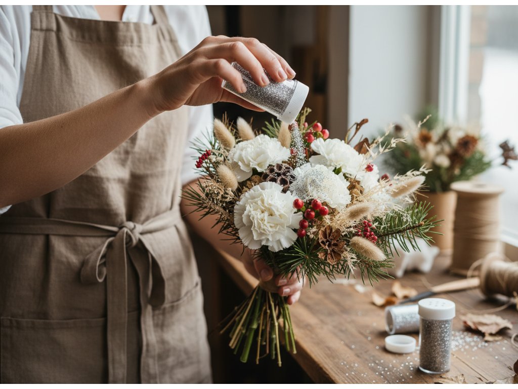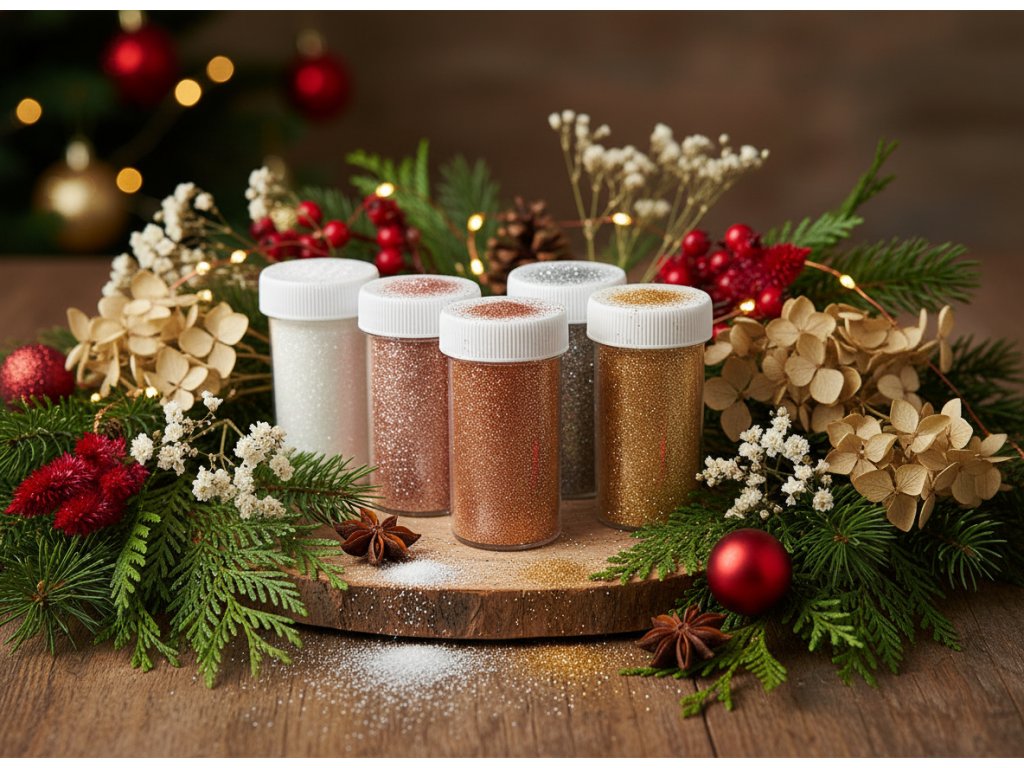 • Nečakaný tip: jemne nimi poprášte vnútorný okraj misy alebo podkladu – aranžmán získa jemný svetelný odraz.