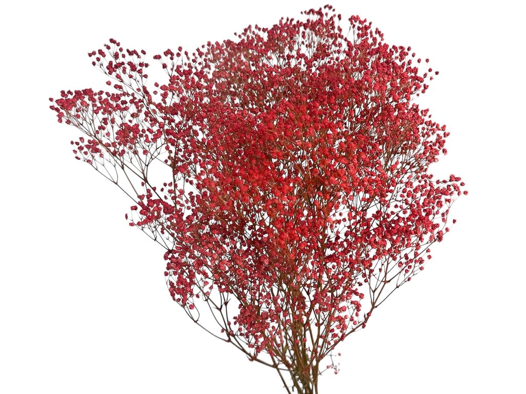 V kvetinových výzdobách sa červená gypsophila často využíva na valentínske aranžmány, jesenné kompozície a zimné dekorácie, kde prináša pocit tepla a noblesy. V spojení so zlatou, bordovou či bielou vytvára luxusný efekt vhodný aj pre exkluzívne eventy a svadobné výzdoby.