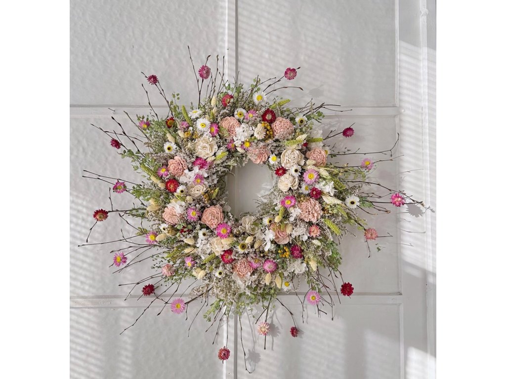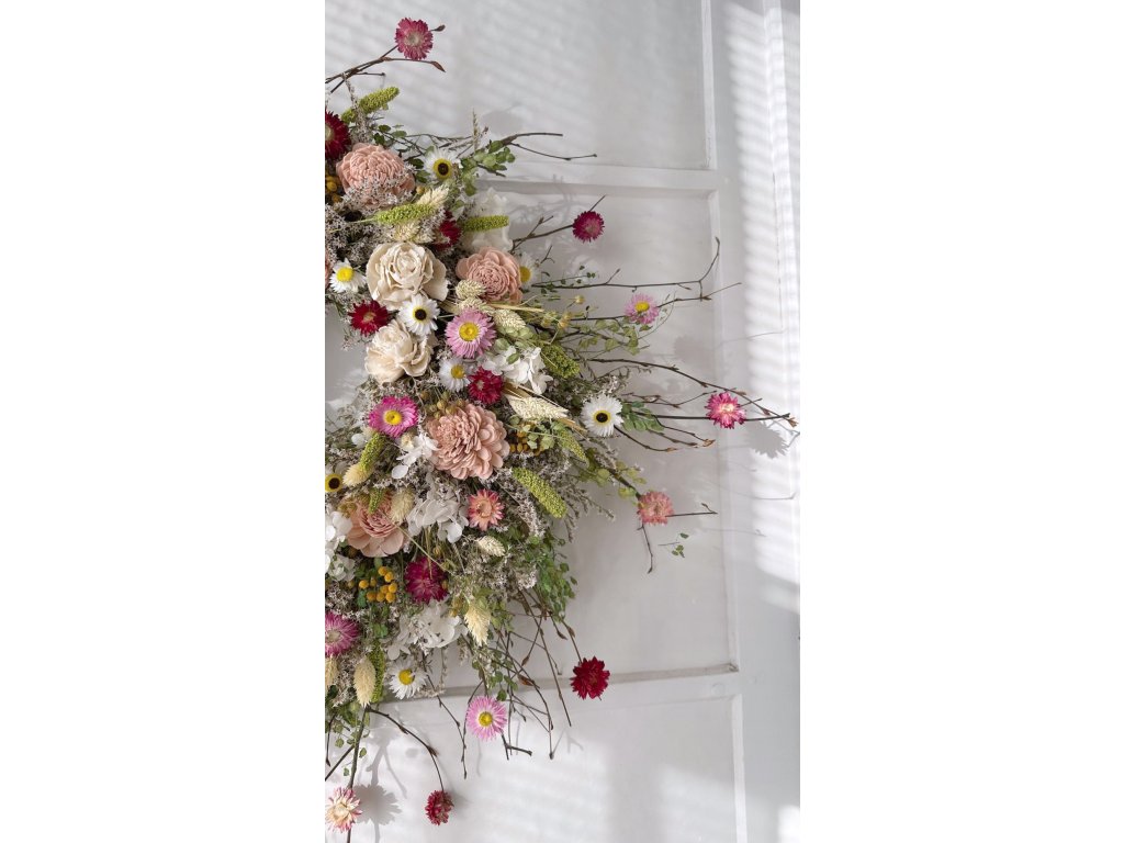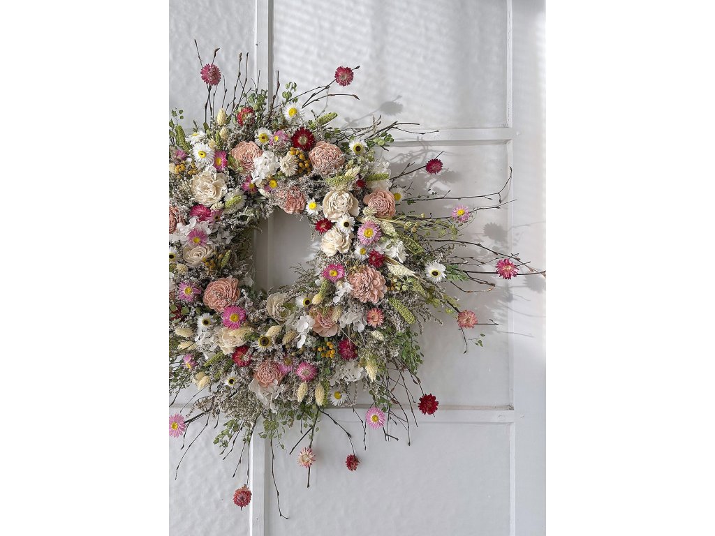 Veniec z vetvičiek, sušených a stabilizovaných kvetov 80cm - ELISA