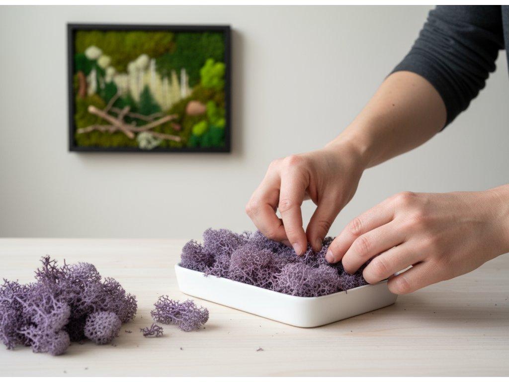 Fialový sobí mach sa krásne hodí na tvorbu machových obrazov, sviežich dekorácií a moderných aranžmánov. Je obľúbeným doplnkom pre machové obrazy so stromom života, ktoré vďaka nemu získavajú jedinečný a harmonický vzhľad.