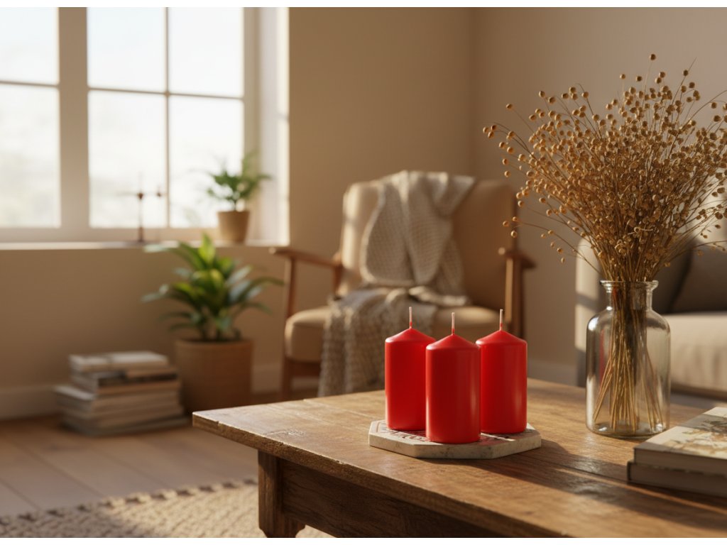 • Červené sviečky vizuálne zahrejú interiér a sú skvelé do tradičných aj moderných aranžmánov.