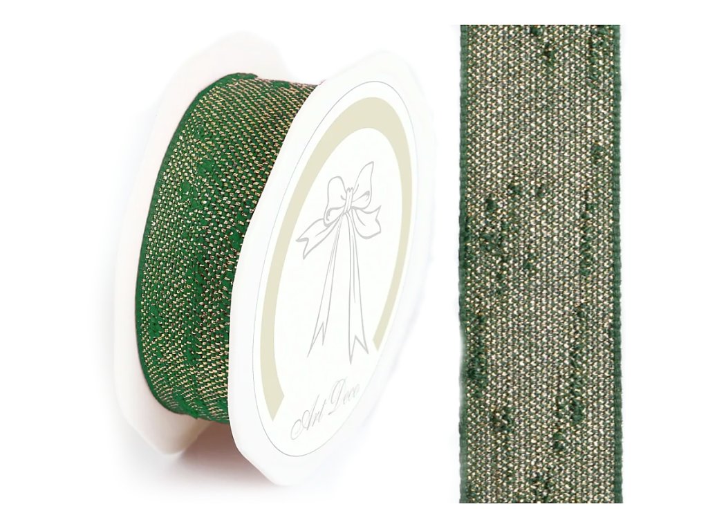 Dekoračná stuha 25mm tmavá zelená so zlatým vláknom 10m