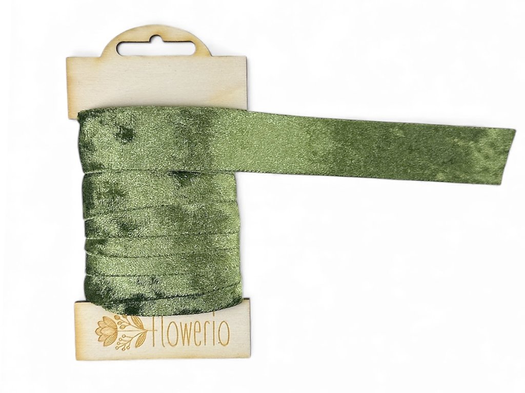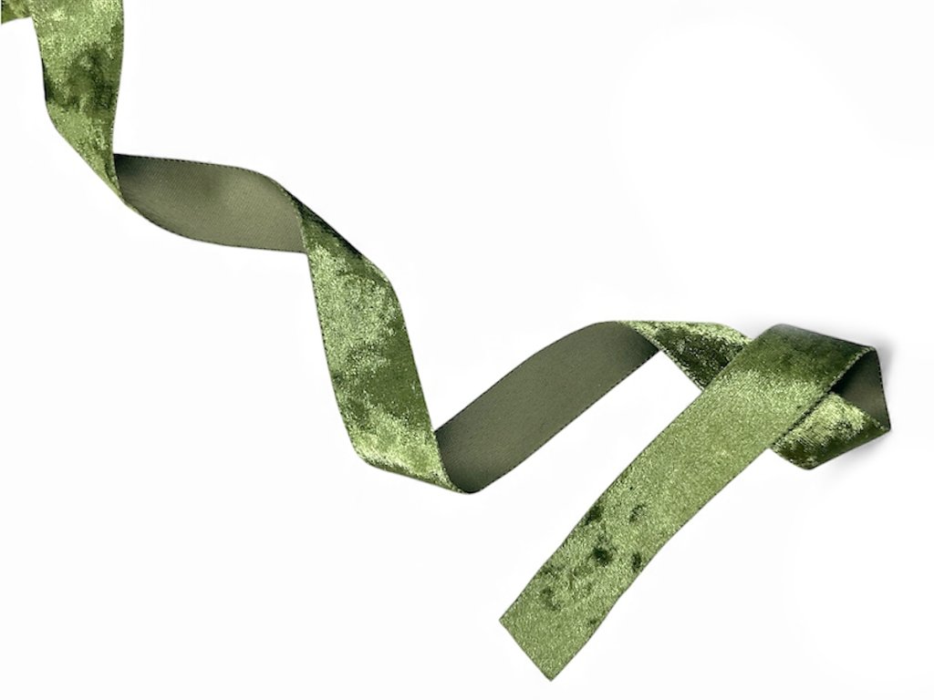 Zamatová stuha DELUXE 25mm 5m - machovo zelená
