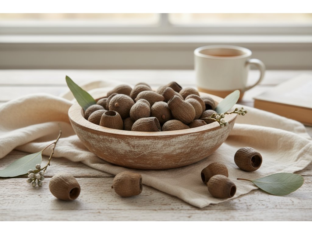 Eukalyptus Bell Gum je druh eukalyptu pôvodom z Austrálie, kde rastie ako nízky ker alebo malý stromček. Je známy svojimi guľatými plodmi s jemnou prírodnou farbou, ktoré sa sušia a používajú v dekoráciách po celom svete. Tento dekoratívny prvok prináša do interiéru rustikálny a prirodzený nádych, spája sa s témou prírody a exotiky. Upozornenie: Plody sú určené výhradne na dekoráciu a nie sú vhodné na konzumáciu. Pri manipulácii odporúčame opatrné zaobchádzanie, aby nedošlo k poškodeniu plodov.