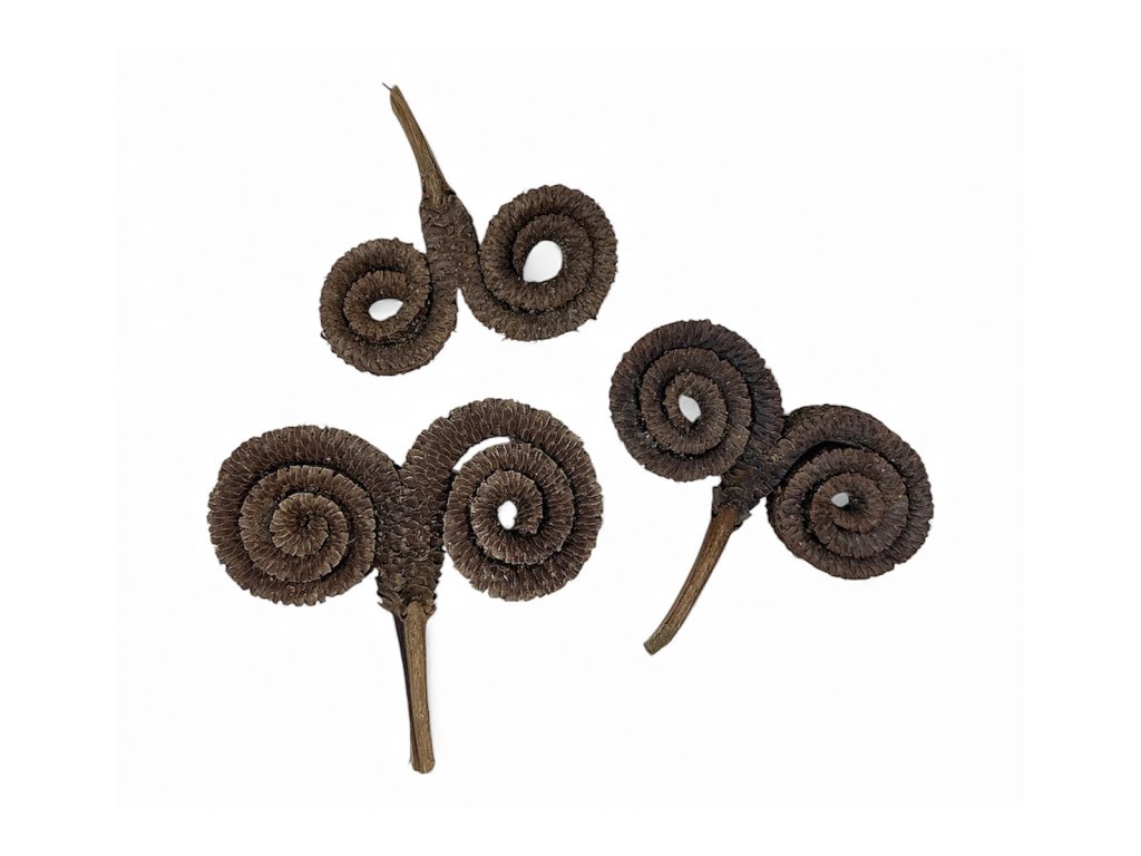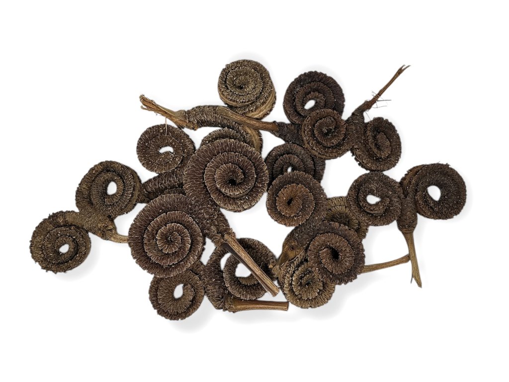Sušené Palm rings z Indie sú prírodné dekoratívne materiály s typickým špirálovitým alebo krúžkovitým tvarom. Skvelo sa hodia do prírodných aranžmánov, vencov, svietnikov alebo ako originálny detail v darčekových baleniach.