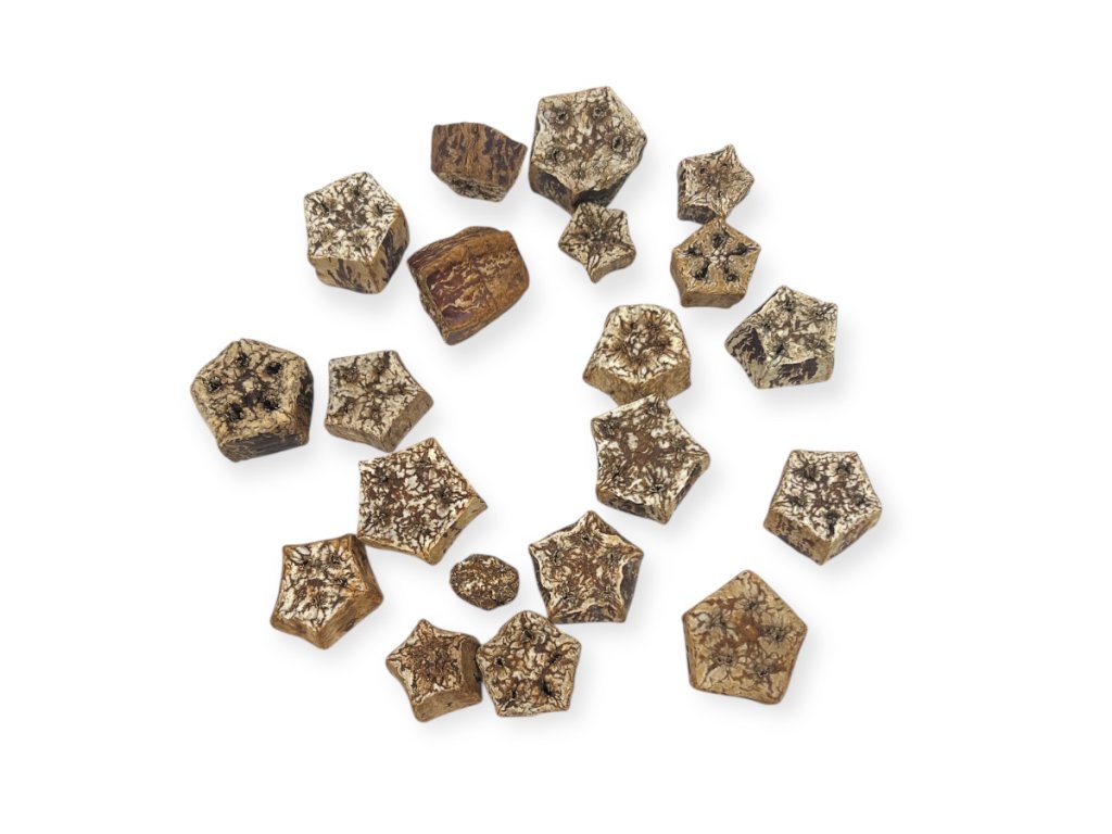 Sušené plátky mahagónu sú výnimočným dekoratívnym prvkom s prirodzeným hviezdicovým tvarom, ktorý okamžite upúta pozornosť. Využijete ich pri tvorbe venčekov, adventných ozdôb, svietnikov, prírodných aranžmánov či celoročných dekorácií v rustikálnom alebo boho štýle. Vďaka ich pevnosti a stabilnému tvaru sa ľahko lepí aj pracuje s nimi, čo ocenia floristky aj nadšení DIY tvorcovia. Kombinujú sa krásne so šiškami, makovicami, galpini, lotosom, machmi či sušenými trávami, no rovnako dobre vyniknú aj ako samostatný dekor v miske alebo sklenenej váze. Ak chcete zvýrazniť ich prirodzenú kresbu, môžete ich jemne pretrieť olejom na drevo alebo prestriekať matným lakom.