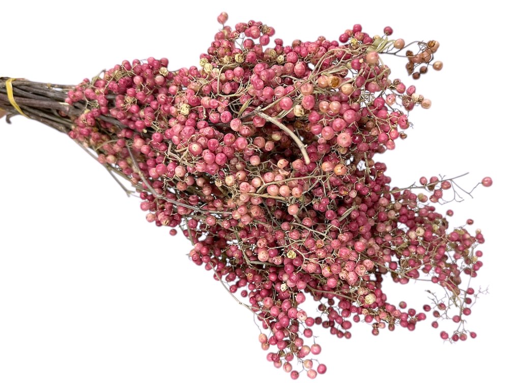 Hoci sa často nazýva „ružové korenie“, nejde o pravé korenie, ale o plody stromu Schinus molle. V minulosti sa tieto bobule používali ako symbol hojnosti a radosti, no aj ako ozdobný prvok počas zimných sviatkov. Ich sýta ružovočervená farba symbolizuje lásku, vášeň a energiu – preto sú obľúbené v adventných, vianočných aj romantických aranžmánoch.