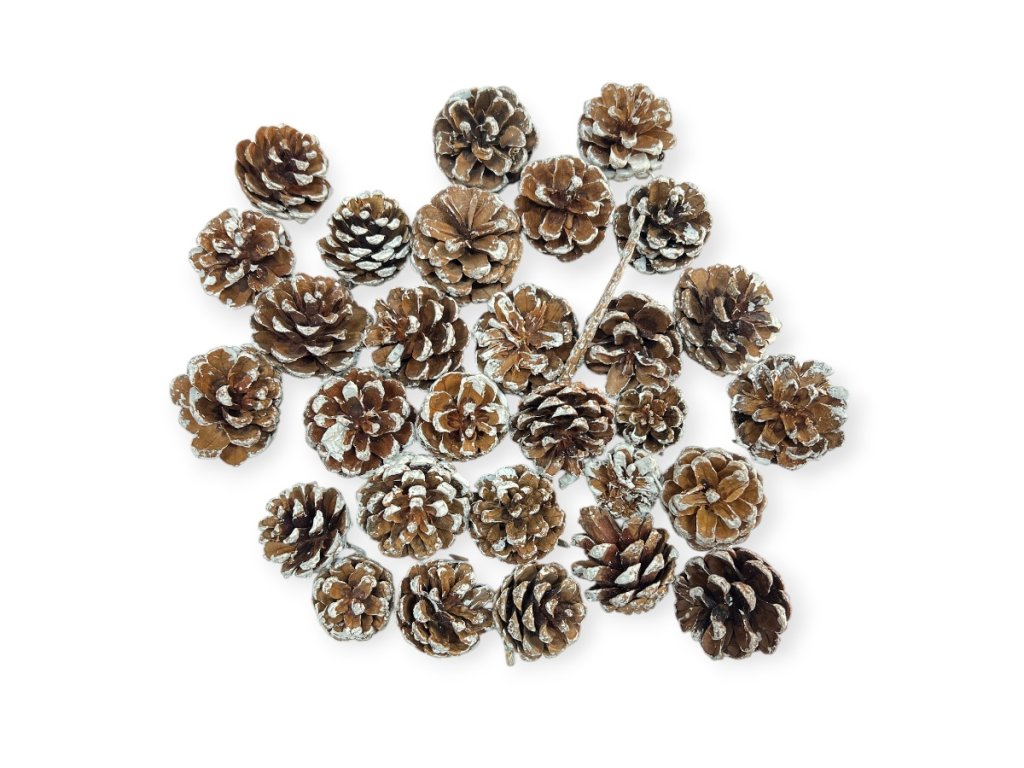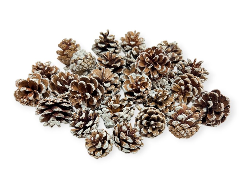 Šišky borovice horskej sú klasikou vo floristike a prírodnom aranžovaní. Ich jemne zabielený povrch vytvára dojem čerstvého mrazu a zároveň pôsobí elegantne a vkusne v zimných dekoráciách. Môžete ich využiť na výrobu vencov, svietnikov, darčekových aranžmánov alebo ako detail do prirodzene ladených kompozícií.