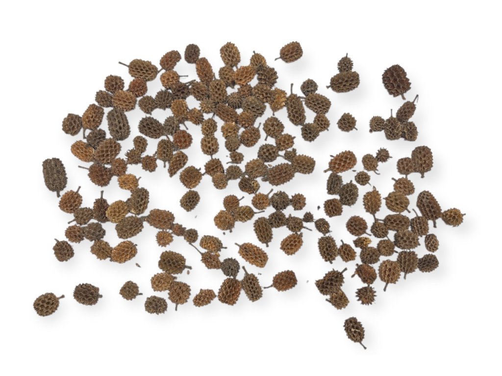 Sušené šišky jelše – mix veľkostí 2–4 cm, zabielené Sušené šišky jelše so zabieleným efektom prinášajú jemný zimný vzhľad, ktorý krásne vynikne v prírodných dekoráciách....
