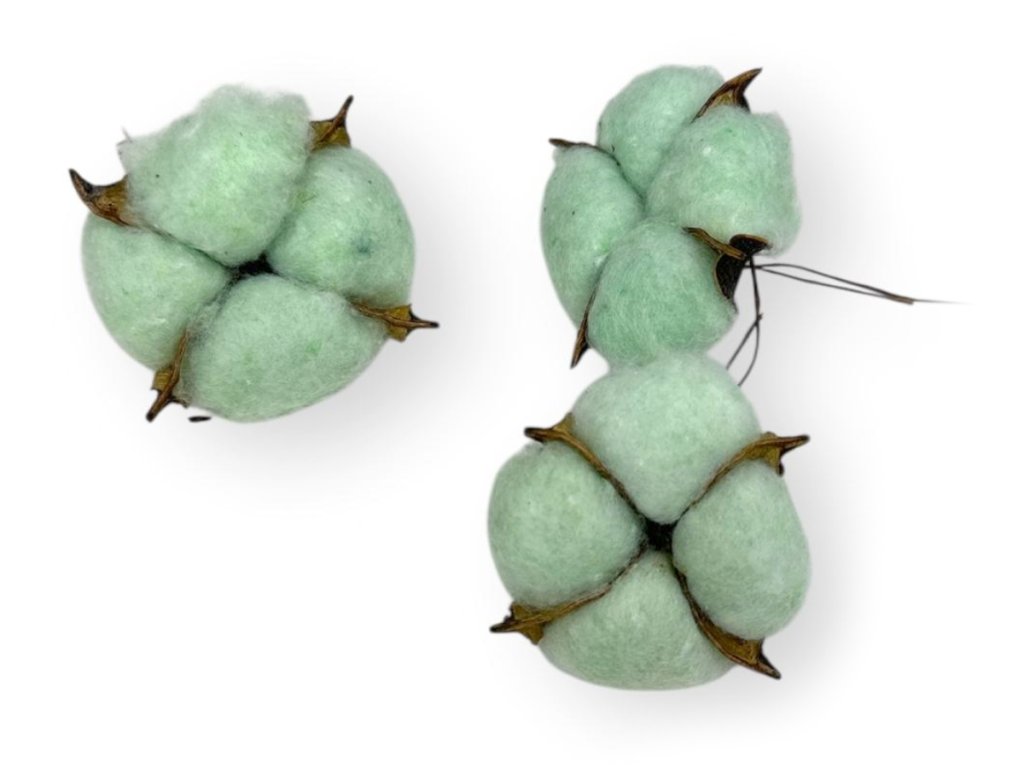 Bavlník pochádza z tropických oblastí Indie a Afriky, no pre floristické účely sa pestuje a suší aj v Stredomorí. Každý kvet sa zbiera ručne v momente, keď sa tobolka prirodzene otvorí a ukáže svoje nadýchané vlákno. Po vysušení sa fixuje, aby si zachoval svoj tvar a hebkosť. Farbené namáčaním a následným sušením v nezávadných farbách.