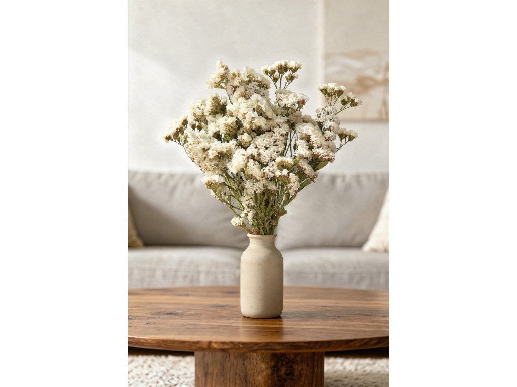 Limonium sinuata, známe aj ako „statice“ alebo „morská levanduľa“, sa pôvodne pestuje v Stredomorí a Ázii. Naša limonka pochádza z rodinnej farby, kde ju starostlivo a s láskou ručne zbierajú, sušia, viažu a balia. Vďaka tomu si kvety uchovajú svoj prirodzený vzhľad, prirodzený odtieň a flexibilitu po celé mesiace.